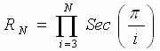 The selction menu at the end allows you to change the visualization. Since multiplying Secants can be represented graphically by contstructing right triangles on top of each other, this is a representation that shows how the product works. At high numbers, both the Polygon and Triagnle visualizations become cluttered, so I also allow you to see only the vertices of the triangles and how that spiral approaches a value slightly more than 8.7. I have taken the product out to 300,000,000 terms, and the calculated ratio of outermost triangle to innermost is 8.700036609454449, though that likely contains a fair bit of round-off error. It seems implausible that further terms would take it all the way to 12, but I doubt that a computer simulation would be able to calculate that with any degree of accuracy or precision.